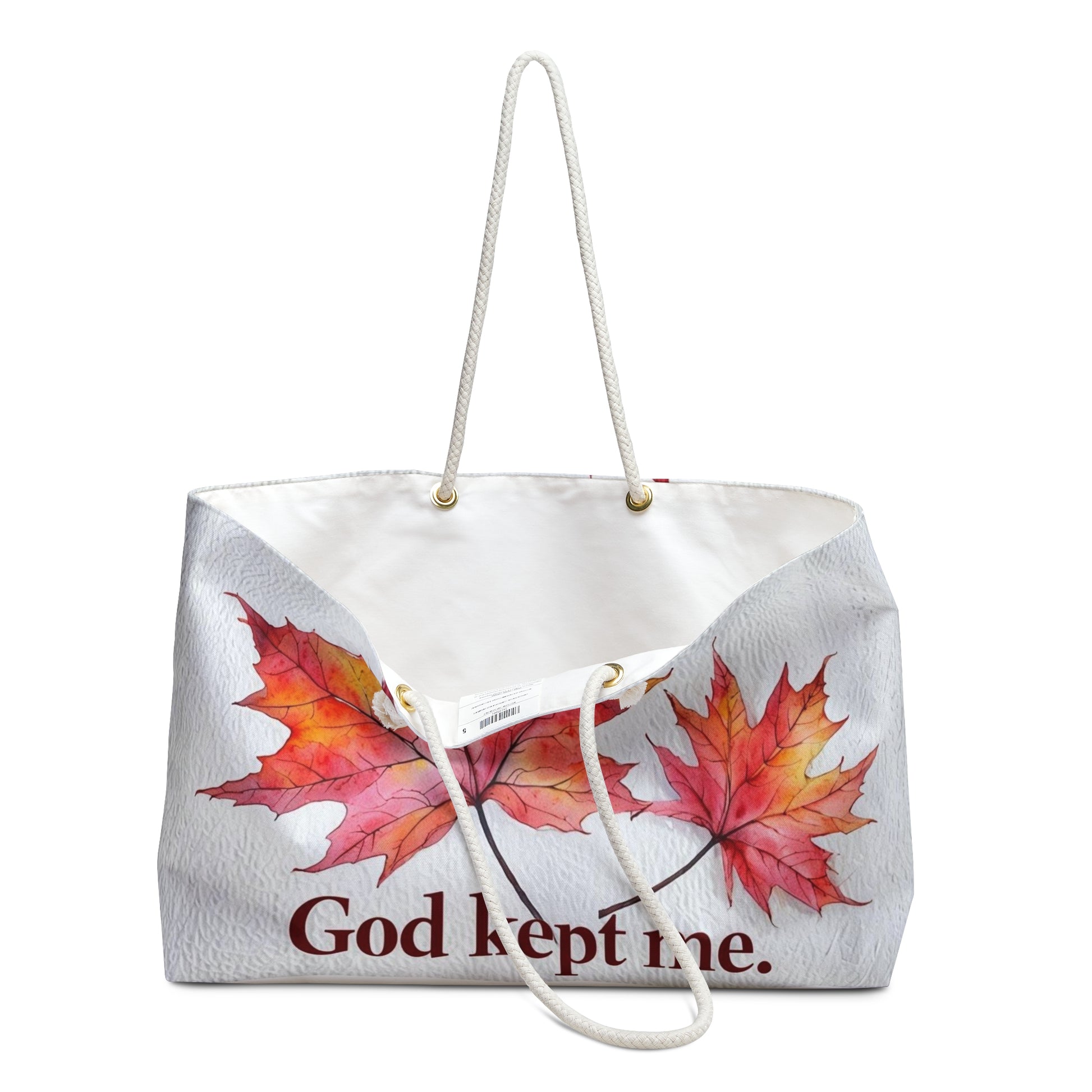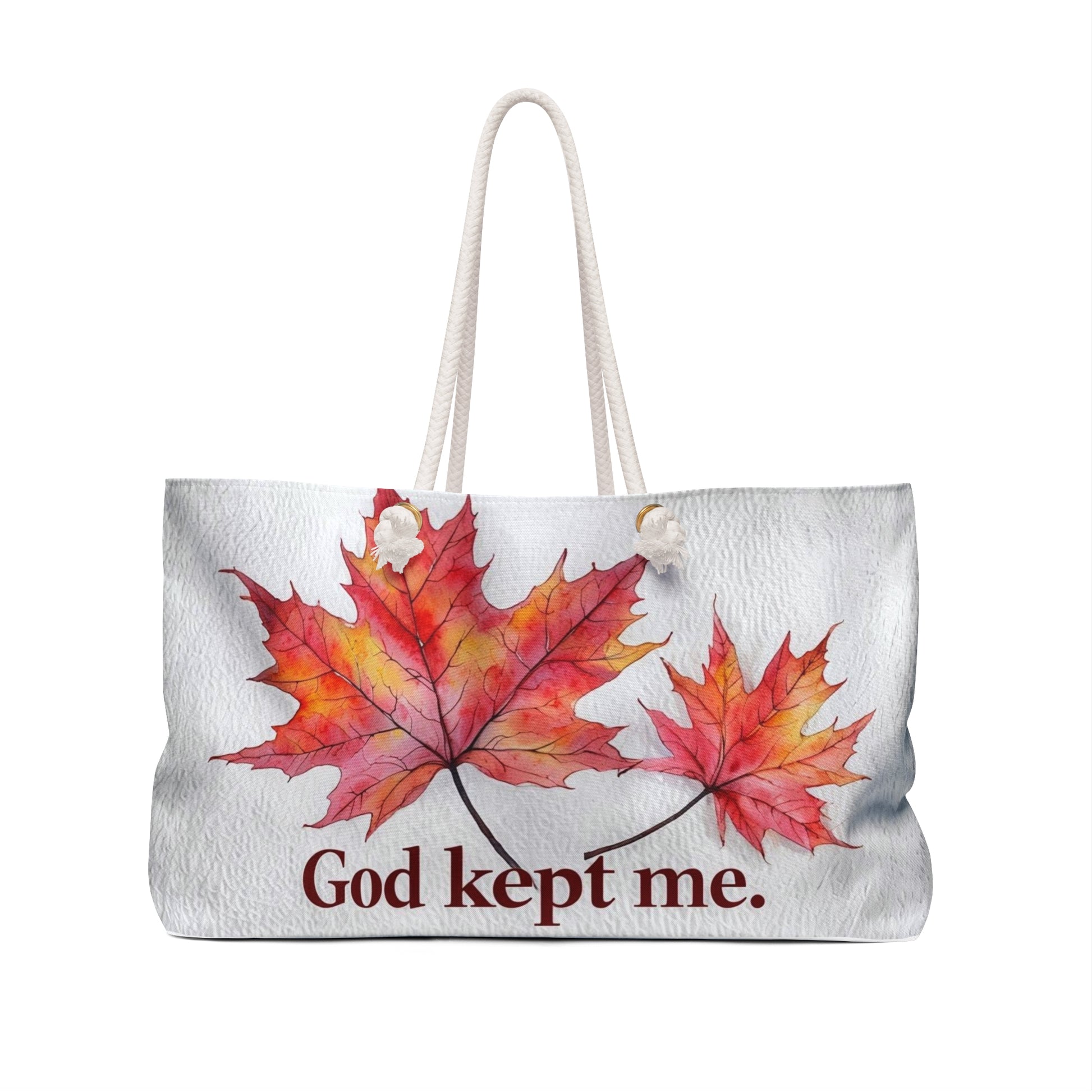 Autumn Inspiration Weekender Bag, Fall Travel Tote, Inspirational Quotes Bag, Seasonal Getaway Bag, God Kept Me Design