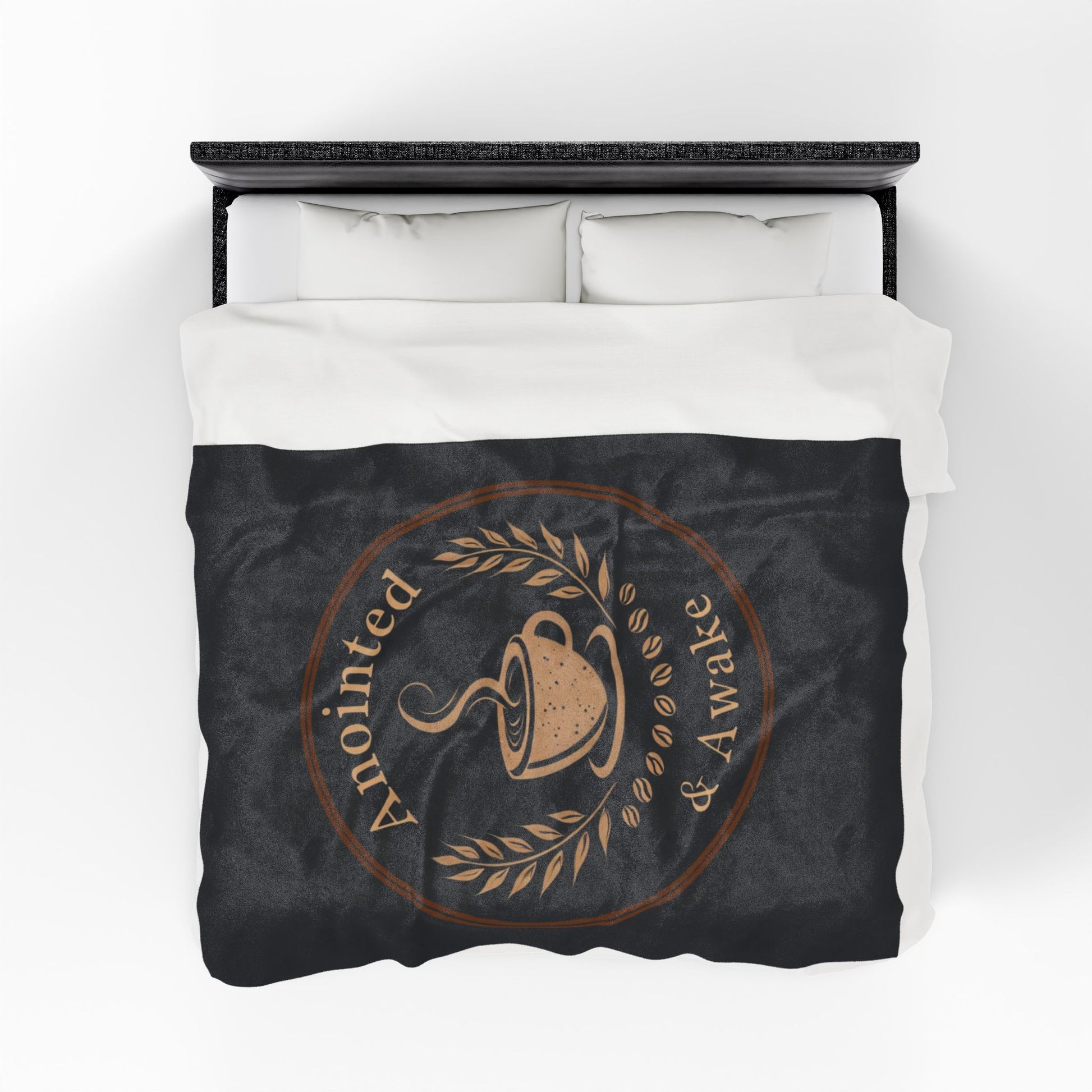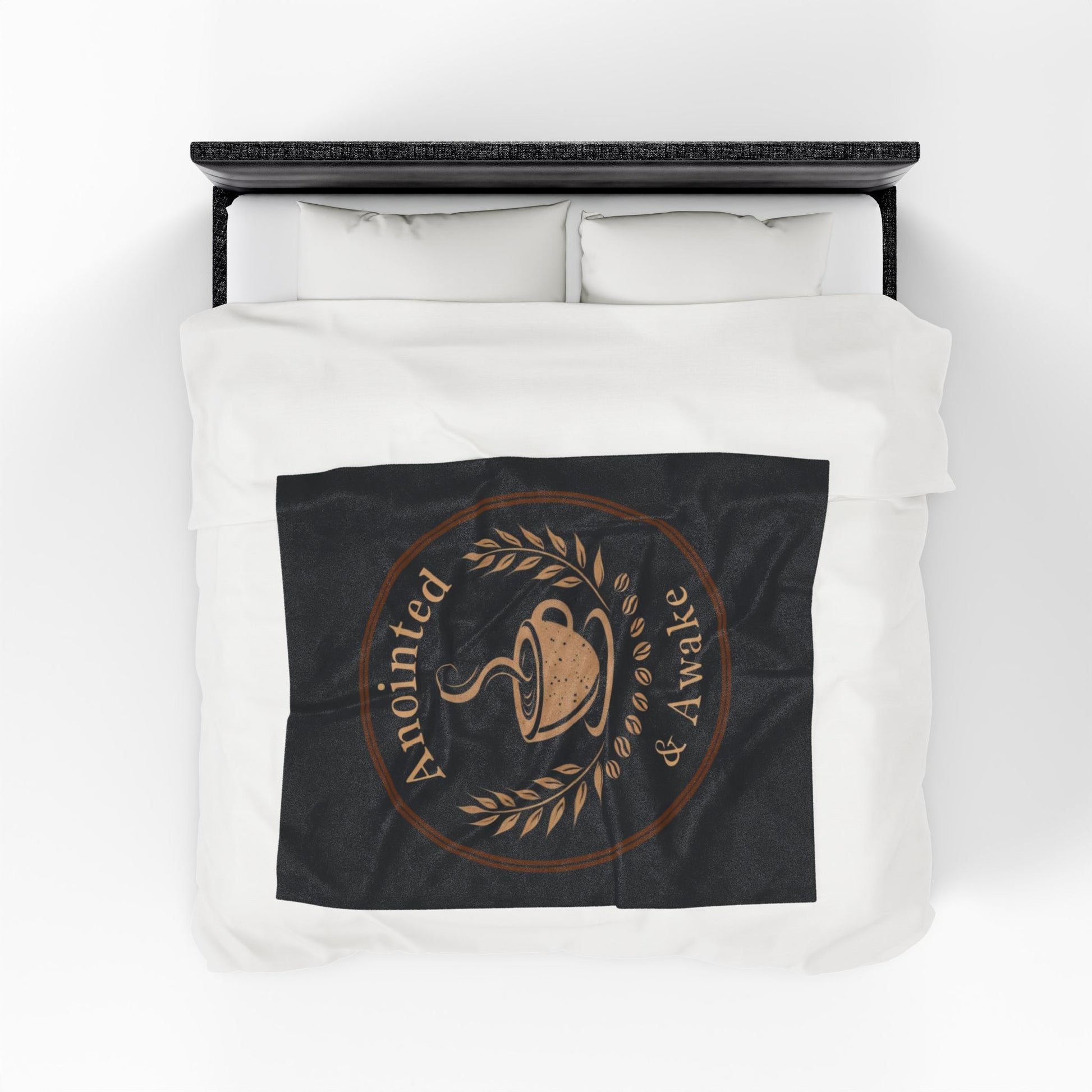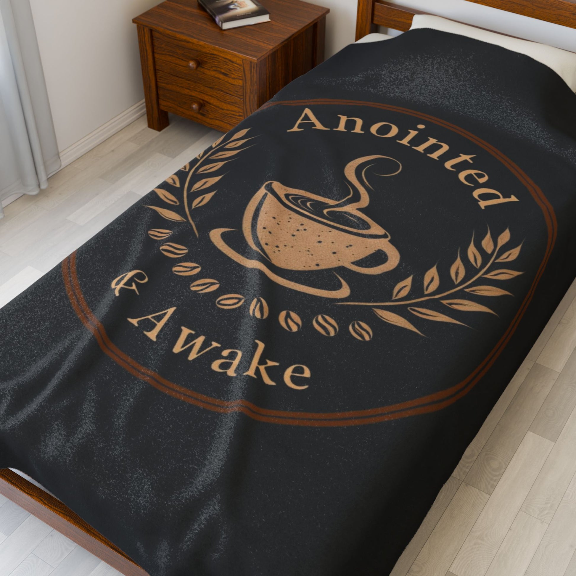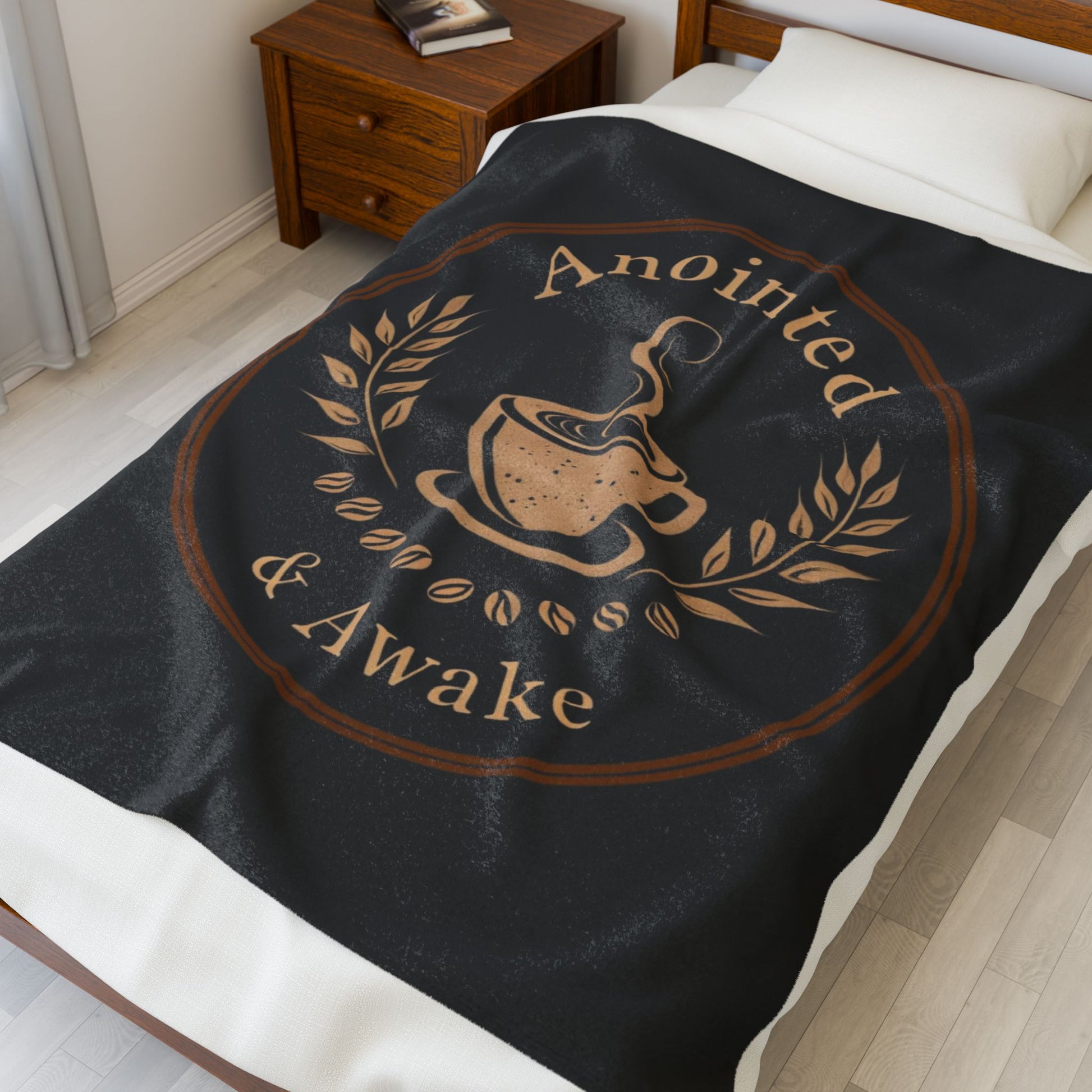 Cozy Velveteen Plush Blanket - Anointed & Awake, Coffee Lover Gift, Warm Home Decor, Ideal for Relaxation, Snuggle Up This Winter