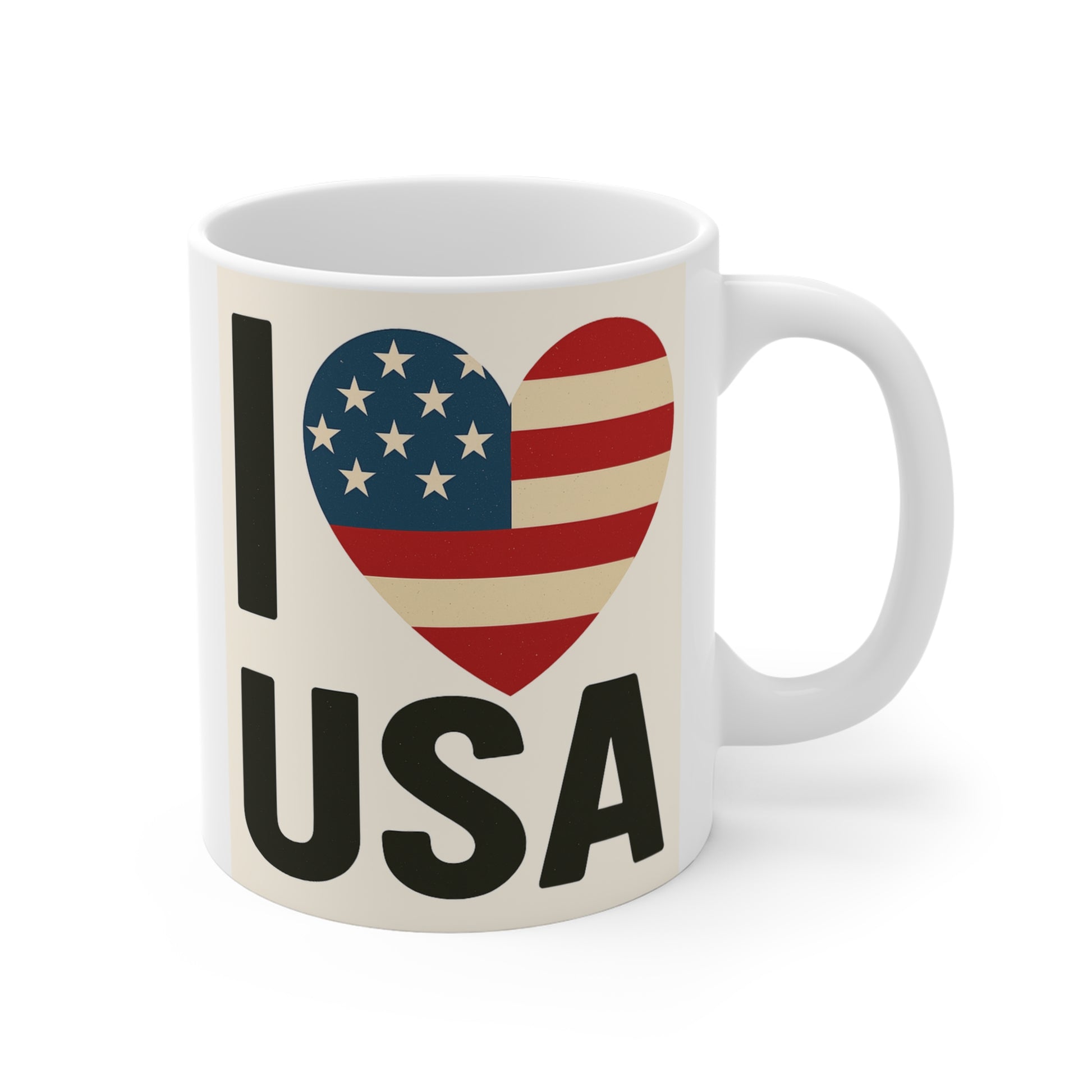 Enjoy your favorite beverages with this delightful mug, perfect for starting your day on a cheerful note. Whether it's a hot cup of coffee in the morning or a soothing tea in the evening, this 11oz mug adds a charming touch to any kitchen. The vibrant design proudly showcases your love for the USA, making it an ideal gift for patriots and those who cherish their country. Celebrate Independence Day, Memorial Day, or any occasion that calls for a toast to freedom with this delightful mug. It's a fantastic addition to any home, perfect for gatherings or quiet moments alone, bringing warmth and joy to every sip.